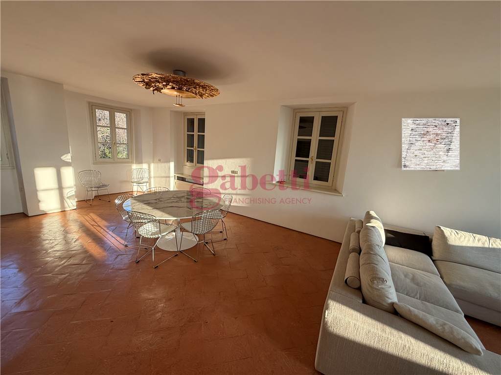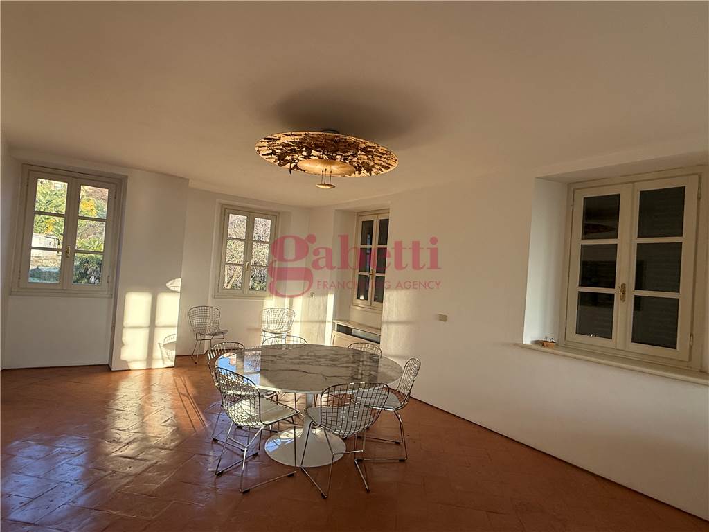 Ingresso indipendente, salone grande con vista stupenda.. pavimenti in cotto lombardo trattato ,cucina abitabile arredata con balconcino disimpegno con bagno ,lavanderia sala tv e studio...